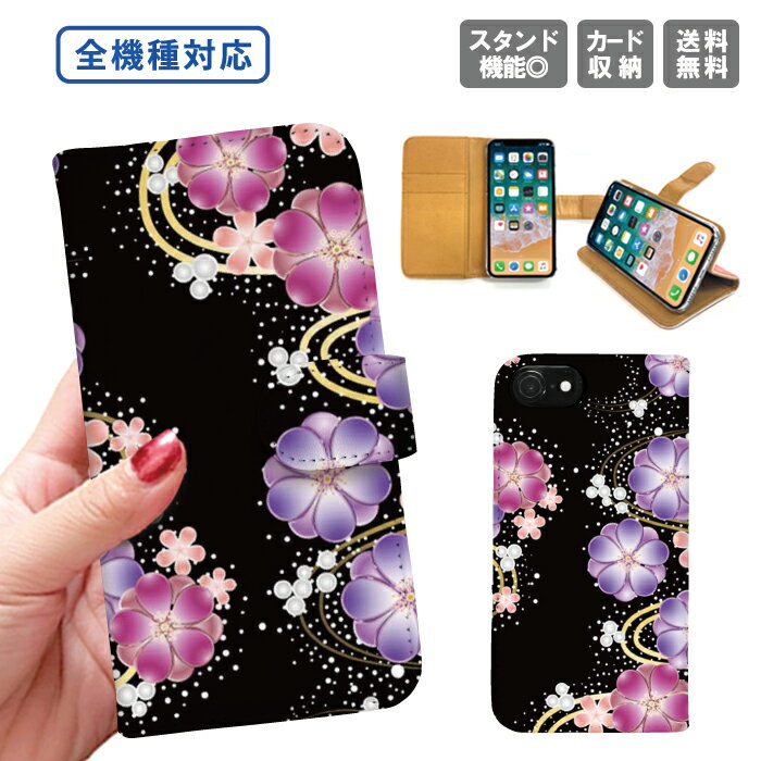 全機種対応 手帳型 スマホケース 携帯ケース 携帯カバー iphone11 ケース 11pro iPhoneX iphone8 iPhoneXs iPhoneXr iPhoneXs GALAXY ARROWS AQUOS 和柄 日本 ジャパン 墨 筆 浴衣 花 レトロ